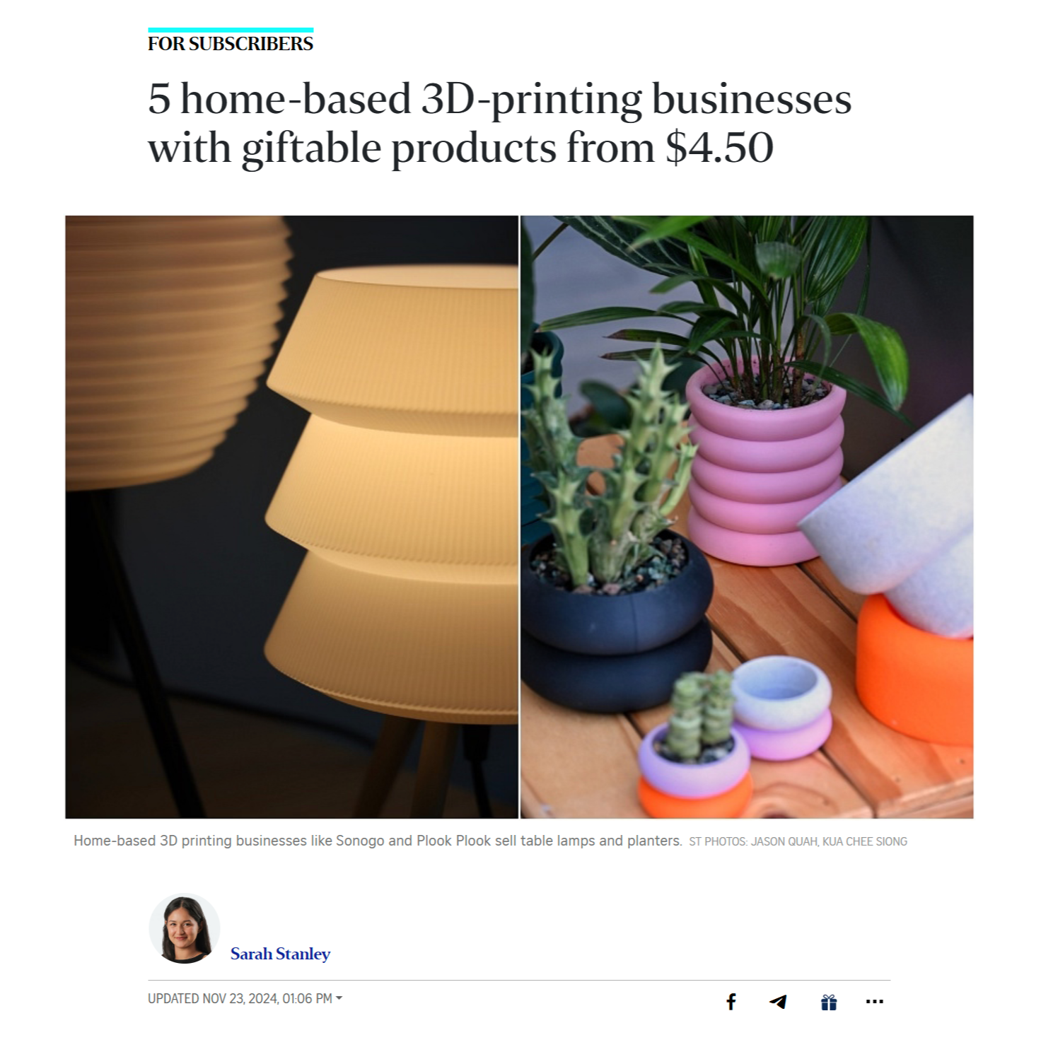 The Straits Timesread hereClick, print, profit: More young Singaporeans build on 3D printing to start side hustles